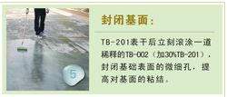 待TB-201T涂刷完立刻滾涂一道稀釋的TB-002(加20%稀釋劑),(作用為封閉基礎表面的微細孔,防止微細孔里的空氣對TB-002刮涂時產(chǎn)生小針孔;提高對基面的粘結,防止因為TB-201滾刷太厚,******固化后表面太光滑而減低粘結強度。)