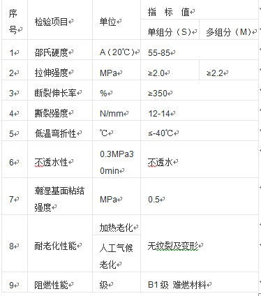 硅PU物理性能指標